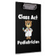 Eine niedliche Kindergarten-Clipboard jeder Kinderarzt ist sicher, Liebe, verfügt über einen Teddy Bären Arzt mit Labrador-Mantel und Stethoskop und weiß Text, dass Klasse Act Pädiatriker auf einem schwarzen Hintergrund.