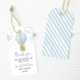 Niedliche blaue Aquarellteddy Bär fliegende Heißluftballon Babydusche danke Geschenketiketten. Abenteuer beginnt Thema.