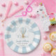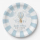Niedlicher blauer Teddy-Bär, der auf Heißluftballon Baby Boy Dusche Party Papier Teller fliegt.