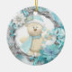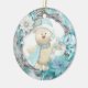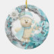 Dieses zweiseitige Design besteht aus einem zauberhaften Teddybär, der einen weihnachtblauen Zuckerrohr-Ornament hält, und einem hübschen Aquablau und Graurahmen, der mit blauen und weißen Poinsettia-Blume geschmückt ist.
