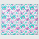 Fun pastellfarbene Schattierungen Rosa und Aqua aquamarin blaue Teddybären Gesichter und grafische Blume wiederholen Muster Geburtstagsverpackung Papier, perfekt für Mädchen 2. Geburtstag. Personalisieren Sie mit Ihrem eigenen Geburtstagsmädchen Name und Single-Ziffer Alter, derzeit liest Rachel. Grafisch einzigartig von Sarah Trett entworfen.