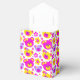 Wiederholen Sie gemusterte Mädchen Teddy Bären Gesichter und Blume Party dank Gunst-Schachteln in hellen fetten pinks, lila, gelb und weiß. Reads Danke, dass du gekommen bist. Ideal, um Geschenke nach Teddybären oder Geburtstagsfeiern zu geben. Originelle Kunst und Musterdesign von Sarah Trett.