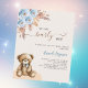 Für eine moderne Babydusche im bohischen Stil. Ein beige Hintergrund. Die Einrichtung besteht aus staubblauen Rose, Pampas-Gras und einem Teddybär. Personalisieren und fügen Sie einen Namen und Party-Details hinzu. 1 Blatt = 1 Einladung mit Druckkante bis Kante.