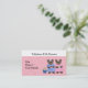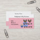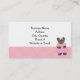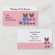 Eine süße Karte für Ihr Nähen, verkaufen Teddybär Geschäft. Zwei kleine Bären mit blauen und rosa Kleider. Ein weicher rosa Hintergrund mit einem leichten diagonalen Streifen. Passen Sie Ihre Geschäftsdaten nach Ihren Wünschen an.