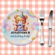 Serve up cake and party treats on these adorable teddy bear birthday plates! The design features a happy brown bear with a party hat and number 2, with watercolor balloons, stars, and rainbow decorations. A perfect match for your little one’s second birthday party theme.