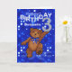 Der niedliche kleine braune Teddybär tanzt durch blaues Licht und eine 3 glitzernde Zahl zu halten, ist ein lustiger 3. Geburtstag, der diesen kleinen Jungen in deinem Leben mit seinem Namen auf der Kartenvorderseite begrüßt. Personalisieren Sie den Namen auf der Vorderseite und im inneren Vers mit den angegebenen Vorlagen. Originelles Design von Anura Design Studio.