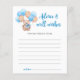 Wasserfarbe Niedlich Teddy Bär mit blauen Ballons Ratgeber und Wünsche Karte.