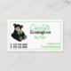 Whimsical Au Pair Visitenkarte, mit Grafik eines schwarzen Teddybären, mit einem großen grünen Bogen, oben. Die Rückseite der Karte wird in solidem Grün ausgeführt. Personalisieren Sie den benutzerdefinierten Text nach Ihren Bedürfnissen.