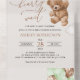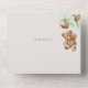 Mit dieser charmanten Babydusche laden Sie Freunde und Familie in Stil und Set zu einem erlebnisreichen Tag ein. Das Design umfasst einen Teddybär mit grünen Ballons auf beigem Hintergrund.