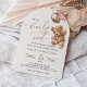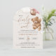 Mit dieser charmanten Babydusche laden Sie Freunde und Familie in Stil und Set zu einem erlebnisreichen Tag ein. Die Einrichtung besteht aus einem Teddybär mit rosa Ballons auf beigem Hintergrund.