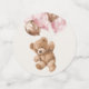 Fügen Sie Ihrer Babydusche mit diesen stilvollen und unvergesslichen Party eine persönliche Touch hinzu! Die Einrichtung besteht aus einem Teddybär mit rosa Ballons auf beigem Hintergrund.
