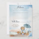 Es ist ein Junge und Wir können frühzeitig abwarten Baby Dusche "Ratschläge" Skript-Design "Für die neuen Eltern" mit einem niedlichen kleinen Bär in einem blauen Regenmantel mit einem blauen Schirm gekleidet. Er sitzt neben einer Wasserpfütze und spielt mit seinen Holzblöcken zwischen Schilf, Gräser und Pilzen. Composite Design von Holiday Hearts Designs.