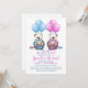Teddy Bär früh dort Thema mit blauen und rosa Ballons. Vorlage für das Party von Geschlechtern. Personalisiert lädt Familiennamen, Elternnamen, Datum, Anschrift und uAwg sowie eingetragene Geschäfte ein.