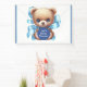 Banner zum Thema personalisierte Babydusche Party. Teddy Bear Blue Design. Verwenden Sie die Vorlage, um mit dem Namen Ihrer Wahl zu personalisieren.