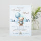 Ein niedlicher Bär, der einen blauen Ballon hält, kündigt eine Babydusche an.