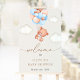 Fügen Sie Ihrer Babydusche mit diesen stilvollen und unvergesslichen Party eine persönliche Touch hinzu! Das Design bietet einen Babybär mit blauen Ballons auf beigem Hintergrund.