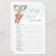 Dieses Design verfügt über einen freundlichen Teddy Bär mit blauen und cremefarbenen Ballons. Der Text "Baby Word Scramble" ist in modernem Kalligraphie-Schriftart geschrieben. Entzerren Sie die Babywörter. Die Antwort Schlüssel: Baby Powder, Flasche, Blanket, Windeln, Lullaby, Autositze, Thermometer, Shampoo, Schnuller, Rattle, Bassinet, Hoher Stuhl, Baby Monitor, Roller, Kinderzimmer, Schaukelstuhl