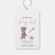 Niedlicher Teddybär Thema Babydusche Gastgeschenk-Tag mit Aquarell-Abbildung eines Tubes in einem Seemann Outfit mit einem Entenspielzeug. Im Text steht: "Vielen Dank BEARy." Ideal für eine Babydusche.