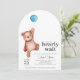 Eine Babydusche "wir können frühzeitig warten" Einladung mit einem Teddybär und einem blauen Ballon für einen kleinen Jungen. Matching Artikel in der Teddy Bear Baby Shower Theme Kollektion erhältlich.