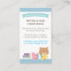 Ermuntern Sie die Gäste, ein Kinderbuch für Ihre Kleine mit dieser niedlichen Karteneinlage zu bringen, die Sie Ihren Einladungen hinzufügen können. Das Design hat einen niedlichen Teddybär, der sich hinsetzt und ein Buch mit einer Auswahl an farbenfrohen Büchern daneben liest. Auf der Rückseite ist ein blaues Polka-Punktmuster. Farbpalette und Design sind am besten geeignet für Mütter, die Babys erwarten! Personalisieren Sie einfach Ihre Party-Daten.
