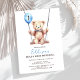 Feiern Sie den ersten Geburtstag Ihres Kindes mit diesen niedlichen Teddybären-Party Einladungen! Die Einrichtung besteht aus einem bezaubernden Aquarellbär, der sanft auf einer Holzschwinge schwingt, während er einen Ballon mit der Nummer eins auf ihm hält. Verwenden Sie die Entwurfstools, um den Text und die Schriftart anzupassen. Auch als digitaler Download für Einladung verfügbar.
