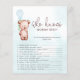 Das Design des Babyduschspiels strahlt Lustigkeit und Charme aus. Der süße Teddybär mit seinem schüchternen Benehmen wird perfekt durch den blauen Ballon und die zarten Eukalyptus-Blätter, die ihn umgeben, ergänzt. Der Teddybär, der das wohl beste Baby-Duschspiel kennt, ist eine wunderbare Möglichkeit, die Mami to be und ihre neue Ankunft zu feiern. Der schüchterne Teddybär mit seinem blauen Ballon und den zarten Eukalyptus-Blätter Set den Ton für ein lustiges und spielerisches Duschfest. Matching-Elemente sind verfügbar. Vollständige Sammlung: https://www.zazzle.com/collections/teddy_bear_boy_collection-119413627822084291