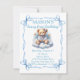 1. Geburtstag Einladung mit einem niedlichen Teddybär, Ballons und Kuchen in sanft hellblau und beige. Niedliches Design für den ersten oder einen Geburtstag eines kleinen Jungen. Personalisieren Sie einfach den gesamten Text einschließlich der Geburtstagsnummer.