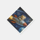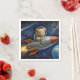 A cute teddy bear wearing a space helmet is flying through the cosmos in a small rocket