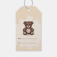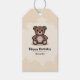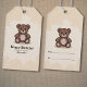 Ein Geschenktag mit einer Illustration eines Teddybären, alles auf einem beigefarbenen Hintergrund. Perfekt für Ihre Geschenke an ein Kind.