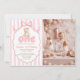 Teddy Bear Girls Pink Bow Stripes 1st Birthday Einladung