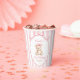 Teddy Bear Girls Pink Bow Stripes 1st Birthday Pappbecher