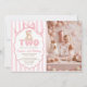 Teddy Bear Girls Pink Bow Stripes 2nd Birthday Invitation