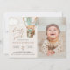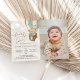 Mit dieser charmanten Geburtstagseinladung laden Sie Freunde und Familie in Stil und Set ein. Das Design bietet Teddybär in grünem Heißluftballon auf beigem Hintergrund.