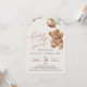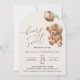 Mit dieser charmanten Geburtstagseinladung laden Sie Freunde und Familie in Stil und Set ein. Das Design umfasst einen Teddybär mit grünen Ballons auf beigem Hintergrund.