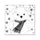 Ein bezaubernder Marker, der von einem weißen Teddybär in einem roten Schal zeichne, umgeben von leuchtend roten Herzen.