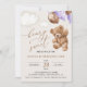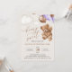 Mit dieser charmanten Geburtstagseinladung laden Sie Freunde und Familie in Stil und Set ein. Das Design umfasst einen Teddybär mit lila Ballons auf beigem Hintergrund.