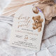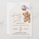 Mit dieser charmanten Geburtstagseinladung laden Sie Freunde und Familie in Stil und Set ein. Das Design umfasst einen Teddybär mit lila Ballons auf beigem Hintergrund.