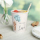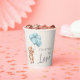 Diese bezaubernde Aquarellbild eines braunen Teddybären mit blauen Ballons in minimalistischem Design.