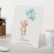 Diese bezaubernde Aquarellbild eines braunen Teddybären mit blauen Ballons in minimalistischem Design.