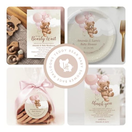Blush Pink Balloon Teddy Bear Baby ShowerDesignt von Amanda Cudnik