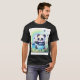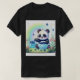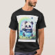 Das Shirt zeigt eine Grafik eines niedlichen Cartoon Panda sitzend in einem Grasfeld. Der Panda ist von Heidelbeeren in großen Schalen oder Körben umgeben. Im Hintergrund gibt es einen weichen, farbenfrohen Regenbogen und einige Blume. Der allgemeine Stil ist skurril und fröhlich.