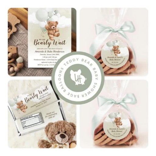 Sage Balloons Teddy Bear Baby ShowerDesignt von Amanda Cudnik