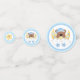 Der süße Teddybär guckt hinter den Mond mit fröhlichen blauen und gelben Sternen, die einen Ballon halten, der bereit ist, Ihren kleinen Jungen zu feiern @Kristi W Designs