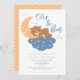Wir sind Over the Moon Baby Shower Einladung mit niedlichen Teddybären schlafen auf puffblauer Wolke und dem Halbmond. Sweet Junge oder Mädchen Dusche Einladung.