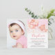 Teddy Bear Pink Balloons Gold Stars Foto Taufe Einladung