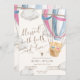 Celebrate the christening of your beautiful twins with this sweet boy and girl twins christening invitation. The design features a soft teddy bear hot air balloon illustration paired with modern, timeless typography, making it perfect for a meaningful and joyful celebration.