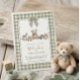 Teddy Bear Sage Green Gingham Bow Baby Shower Einladung