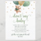 Watercolor Teddy Bear Sage Green und Gold Balloons Baby Shower Don't Say Baby Game Poster. Das Design besticht durch ein elegantes, modernes Textlayout. Um fortgeschrittene Änderungen vorzunehmen, wählen Sie bitte die Option "Klicken Sie, um weitere Anpassungen vorzunehmen".
