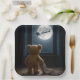 Teddy Bear Watching Santa Claus and Reindeer Pappteller