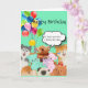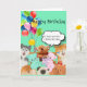 Glückliche Geburtstagskarte gefüllt mit Waldhunden, Katzen und Teddybären. Text Glücklich Geburtstag mit Blase Text "wir hoffen, dass Sie einen schönen Tag fürs Bier haben" von den Tieren! Derzeit ist der Hintergrund türkisfarben, aber das kann der Kunde nach Belieben ändern.